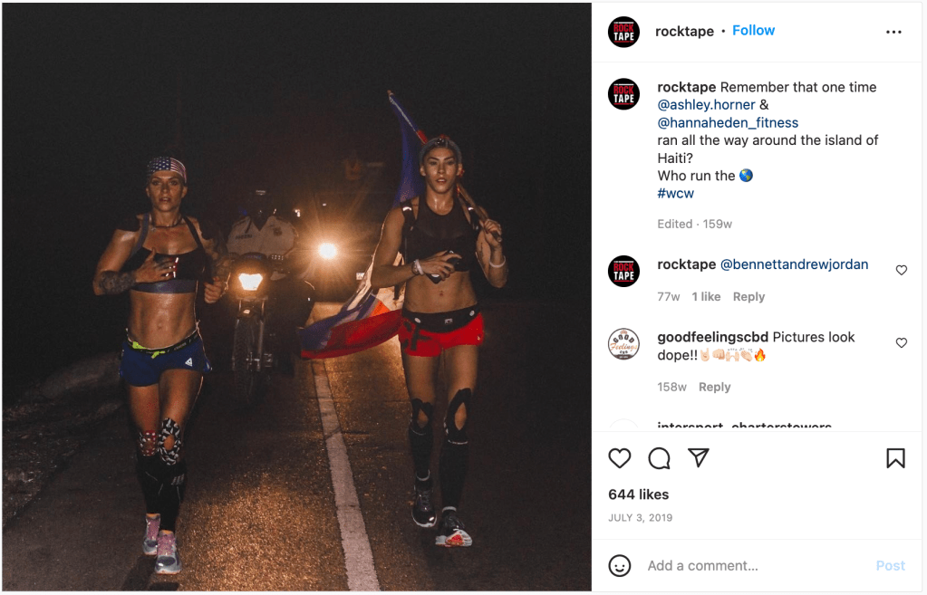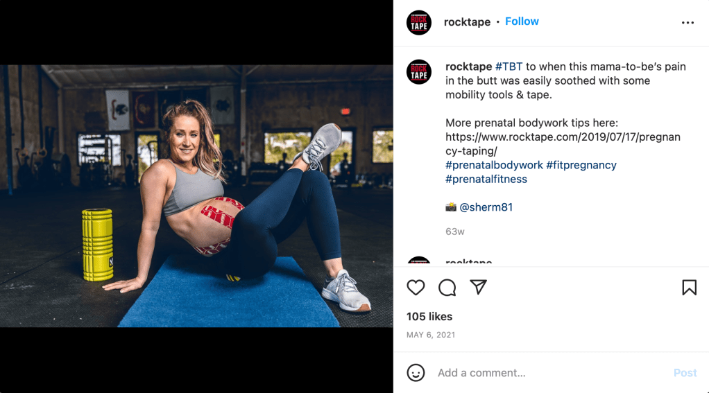 From social listening and community engagement for the #RockTape brand, I couldn’t miss the facial taping trend – dozens videos, images and stories about taping faces to treat and prevent wrinkles were posted weekly throughout 2019-2020. Though this topic had no place in our brand story or marketing strategy, when the topic began to gain traction (especially with our brand, due to the name-drop in this viral video) I was able to capitalize on the medical spa consumers’ interest in our brand by re-sharing these types of stories and adding relevant hashtags, like #botox. Never forget to link stories directly to products or relevant webpages to boost sales!