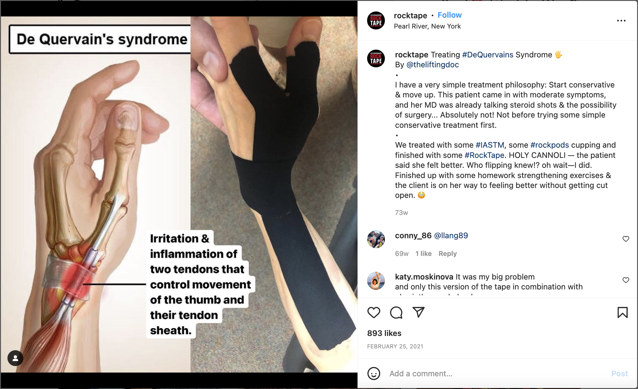 Hashtags like #rehab can be too vague for the diverse medical community, so a great practice for using hashtags in medical marketing is labeling the dysfunction, treatment or condition. To this point, using and following the medical term #edema has proven to be an evergreen, successful, heavy-traffic yielding hashtag to utilize for RockTape social media marketing. I found this video on TikTok under the hashtag #RockTape and reposted it through our Meta channels (Facebook and Instagram) as stories, using the sticker hashtag #edema, tagging the content creator (a medical professional) and the location of their practice (for geo-browsing traffic).