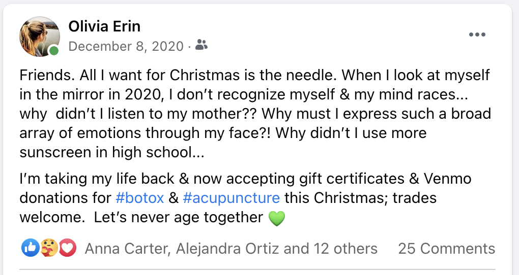 I was APPALLED at the amount of responses I received from my peers on this topic — comments flew in from everywhere and everyone. All the dads told me I don’t need work done. All my boys made fun of me for asking. But the number of women who responded to my post really floored me. Some just replied, “Following.” Others, who I would never have guessed — shared their favorite clinics and typical price range. Even more women private messaged me; they don’t want people to know they get work done.